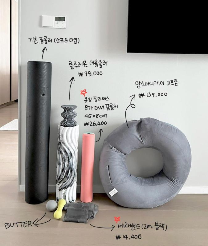 𖤐폼롤러 : 맨 왼쪽 소프트형은 워낙 흔템이고, 룰루레몬 제품은 디자인에 혹해서 샀는데 잘 안씁니다요...^^; 조심스레 비추...