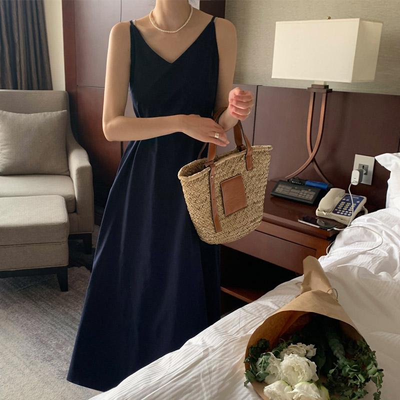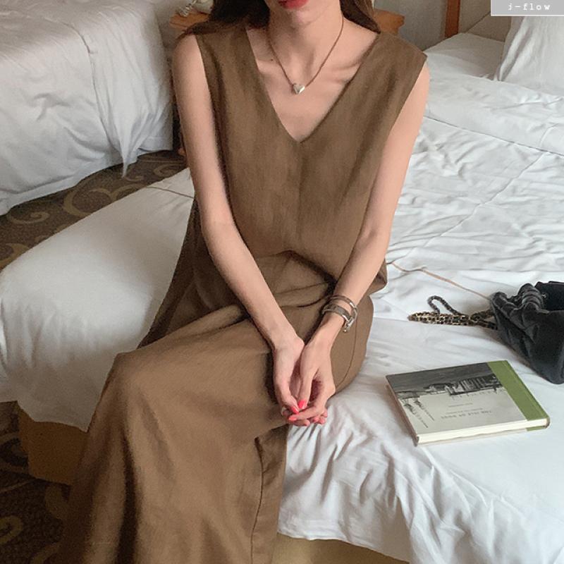 ➰린넨 백포인트 나시 롱 원피스 (2col.)