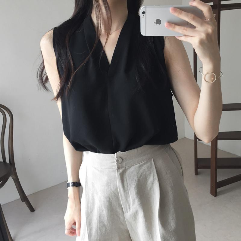 양브이 네크라인으로 목라인이 시원해 보이며,
