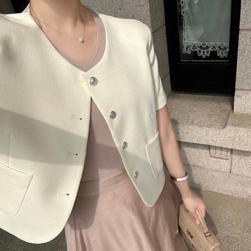 🏷️ 아뮤즈 여름 노카라 반팔 트위드자켓