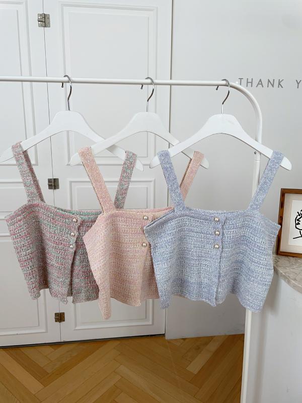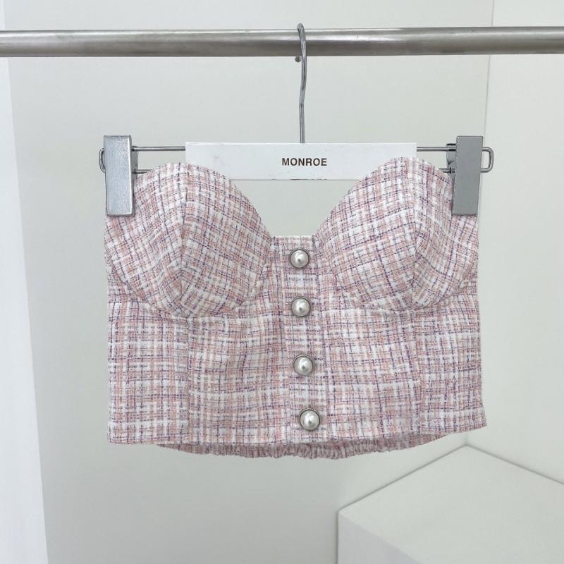 더벨 트위드 진주 뷔스티에 니트 조끼 E-7