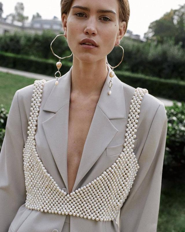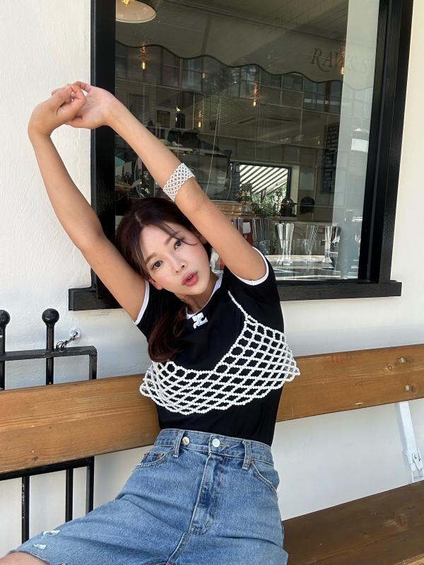 진주 패션 진주 뷔스티에 펄 레이어드 상의