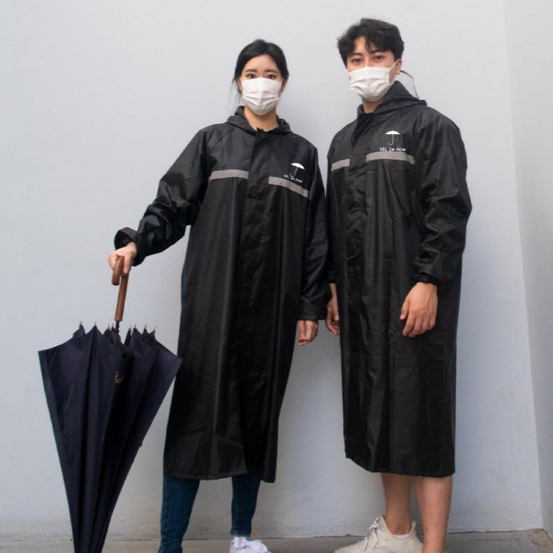 요즘처럼 비가 많이 내리는 장마시즌에 비와 바람을 막아주는 레인코트 하나 딱!