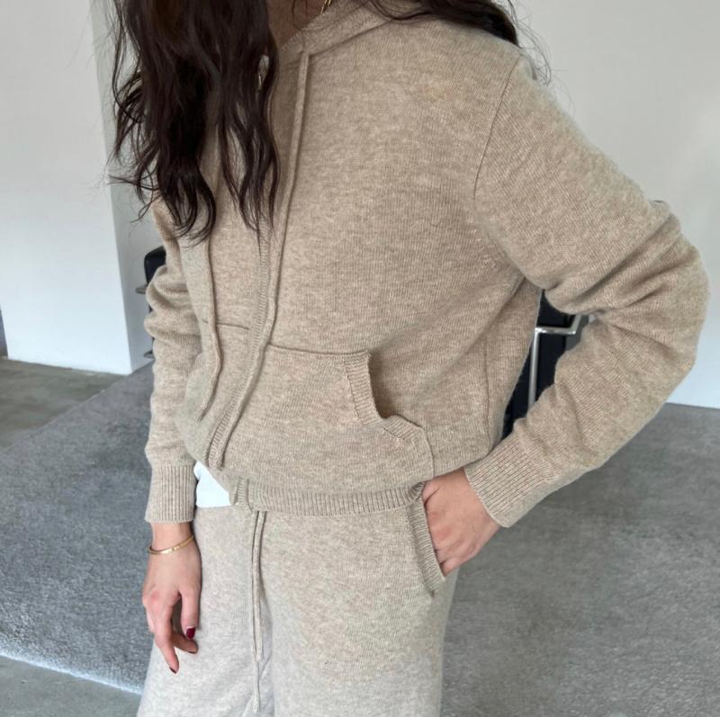 캐시 후드 니트 집업 여성 트레이닝 셋업