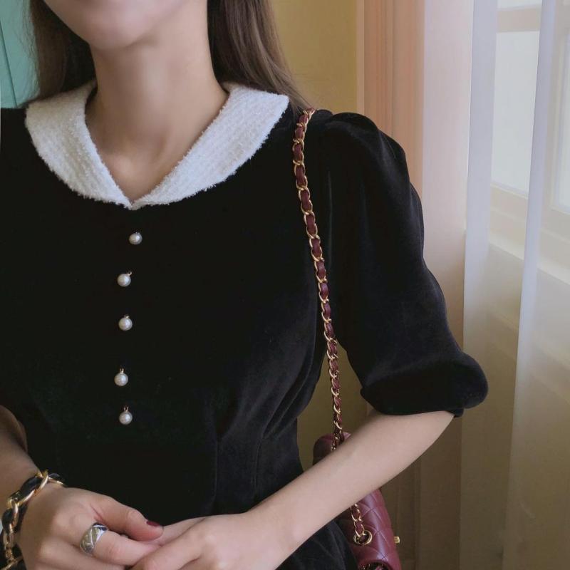 예쁜 트위드반짝 카라와 고급진 무광벨벳소재로 어떤 벨벳원피스보다