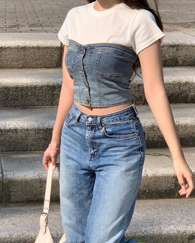 논페이드 데님 뷔스티에라니 .. 🤍 무조건 소장 해야해