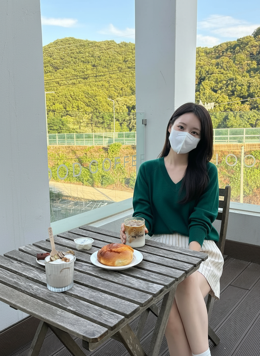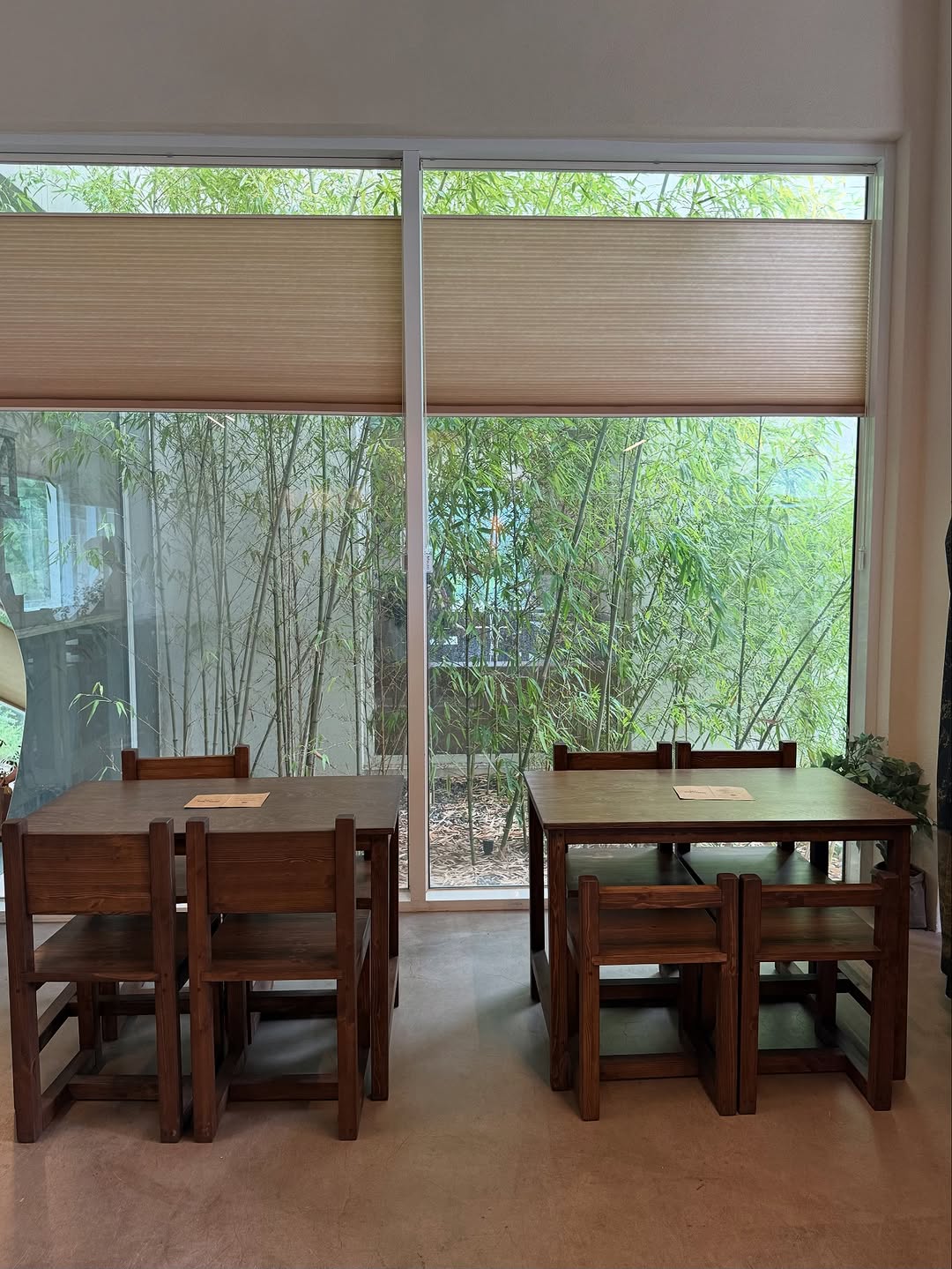 처음 카페에 들어서는 순간, 따뜻한 우드톤 인테리어와 창밖으로 보이는 푸릇푸릇한 대나무 풍경이 저를 편안하게 맞이해주었습니다.