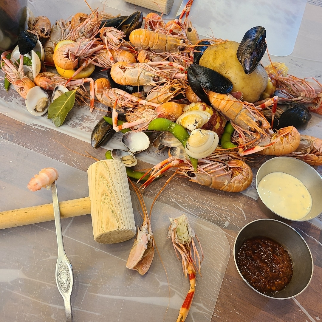 구비되어있는 망치로 딱새우를 깨서 먹는 재미까지💛