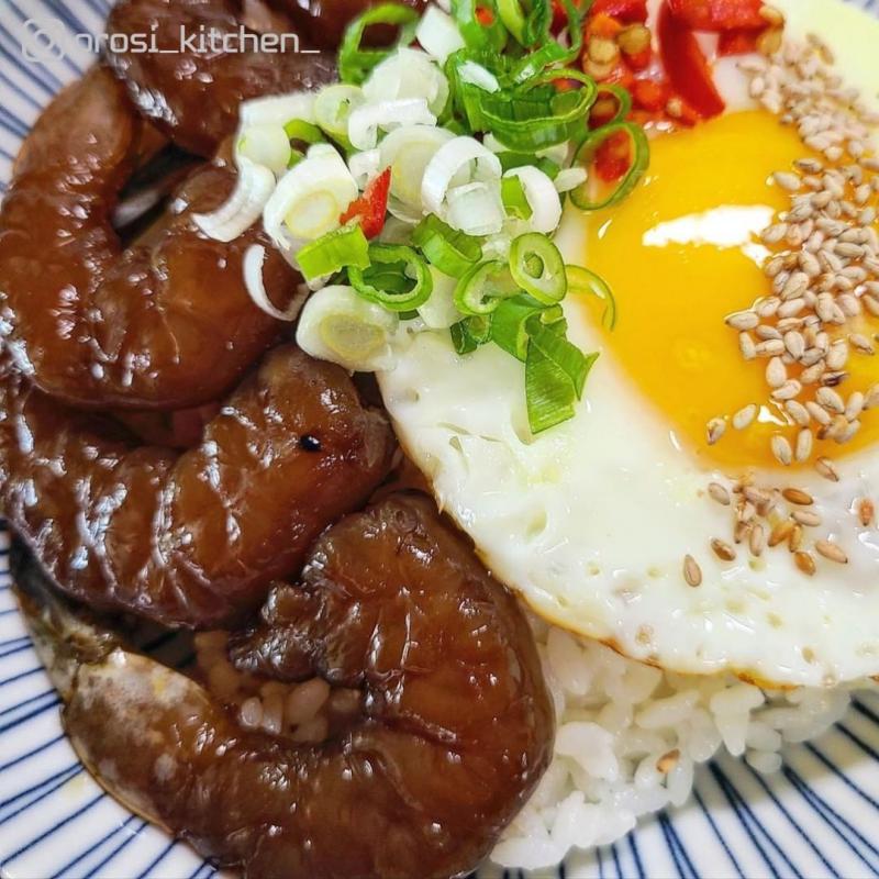 오동통한 새우장에 계란후라이 하나 올리고