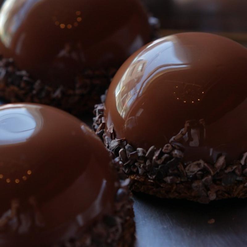 헤이즐넛 크런치 위로 럼 시럽을 적신 초콜릿 비스퀴와 헤이즐넛 프랄리네, 다크 초콜릿 무스로 구성되어 있는 무스 케이크 입니다.