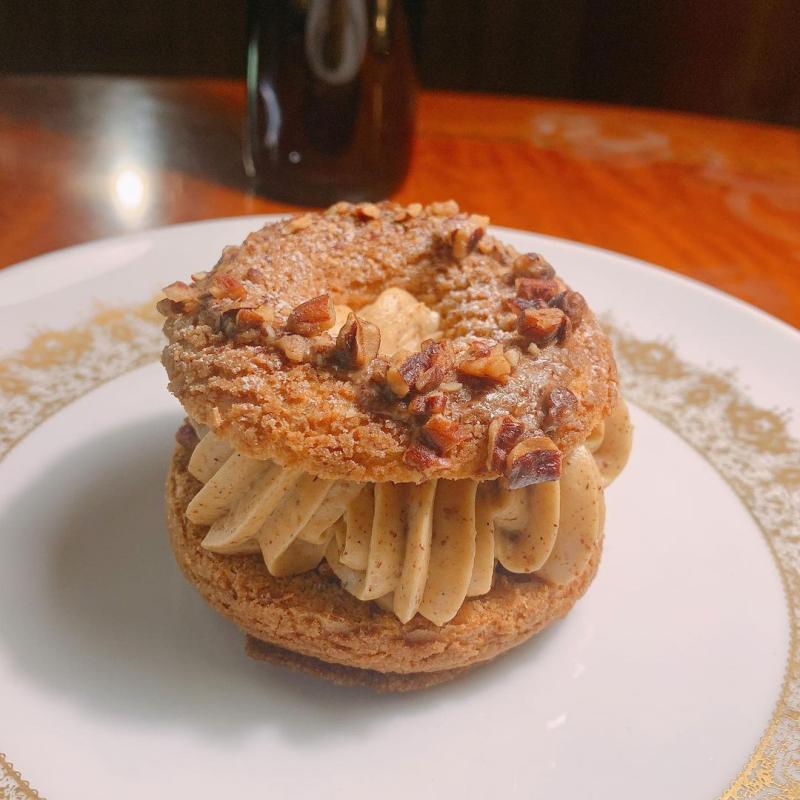 지난 방문에 피그 세이지와 바닐 피스타슈를 넘 맛있게 먹었어서 다른 메뉴도 먹어보려고 들른 끌라시끄. 피칸 파리브레스트는 바삭한 슈에 꾸덕한 피칸 무슬린 크림, 피칸 프랄리네가 어우러진 메뉴였다. 파리브레스트는 주로 헤이즐넛으로 먹는데 피칸은 오랜만에 먹는 듯. 피칸 특유의 향, 특히 씁쓰름한 뒷맛이 잘 느껴지는 파리브레스트 였다. 바삭하게 씹히는 피칸 분태도 고소하고 좋았음.