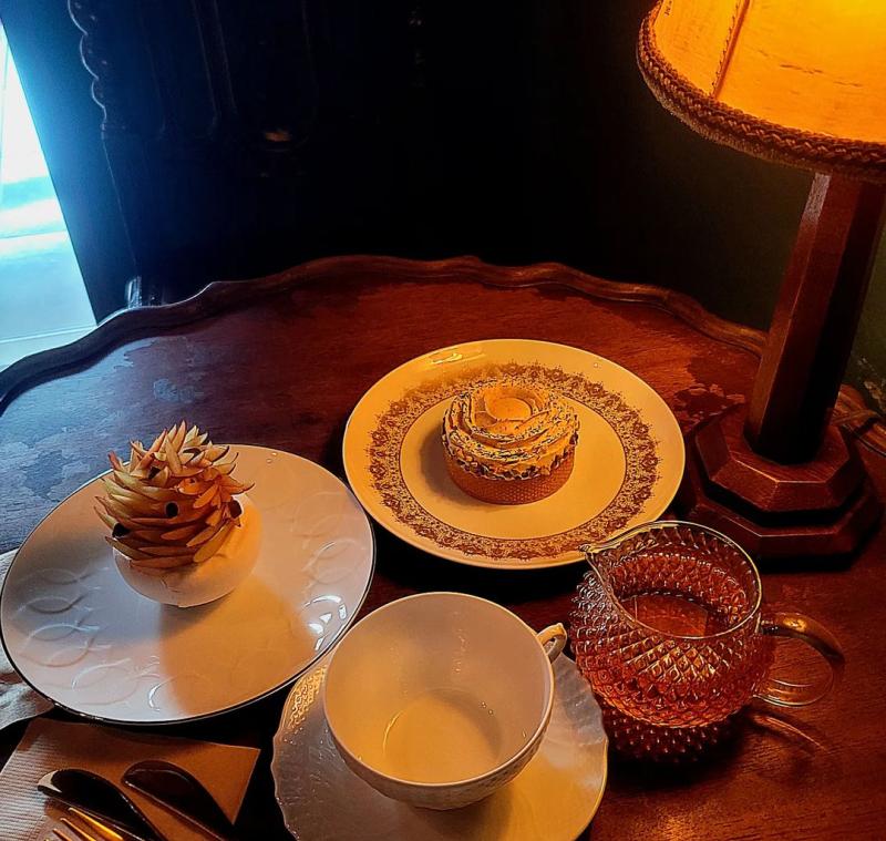 바난 둘세는 오랜만에 먹는 바나나 디저트. 플람베 해서 카라멜라이즈된 바나나 슬라이스가 통으로 여러조각 올라가 있는 비주얼이 이 디저트의 주인공을 절로 알려주는 느낌이다. 빠뜨 안으로는 헤이즐넛 크림이 채워져 있었고 그 위로는 밀키한 카라멜이 올라가 있었다. 위로 올라간 크림도 바나나 둘세 크림이고 윗쪽에 플랑베 가니쉬 말고도 타르트 안쪽으로도 바나나 조각도 약간 씹혀서 바나나 맛이 많이 느껴졌던 타르트. 개취로 바나나는 잘 안먹는데 오랜만에 바나나 디저트 먹어볼 수 있어서 좋았다.