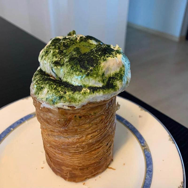 🌿 말차 크러핀 : 잘라보면 안에 끝까지 크림이 가득 차 있다!(안에 사진을 못 찍어서 아쉽... Ĭ ^ Ĭ )